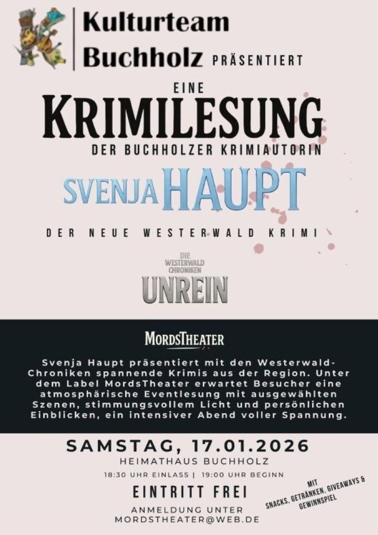 Wir wünschen allen Leserinnen und Lesern ein besinnliches Weihnachtsfest und einen guten Start ins Neue Jahr 2026! Euer Kulturteam Buchholz, Werner Marnett, Stefan Hohn, Uwe Holstein, Steffi Klör, Katja und Jürgen Sellge & Barbara Sterzenbach