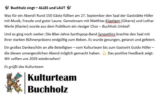 Das Kulturteam Buchholz lädt bei freiem Eintritt zu diesem gemütlichen