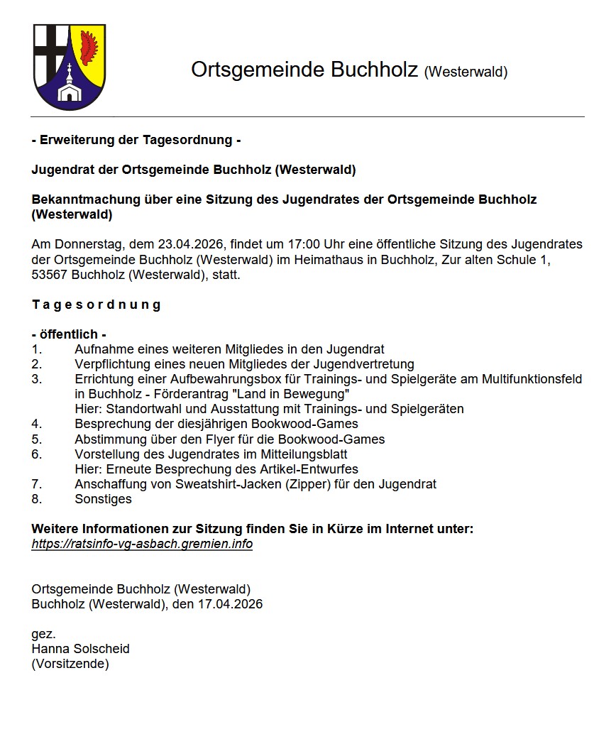In der Ortsgemeinde Buchholz-Krautscheid ist ein Astsammelplatz eingerichtet, damit Bürgerinnen und Bürger ihren Ast- und Strauchschnitt während der Öffnungszeiten anliefern können.