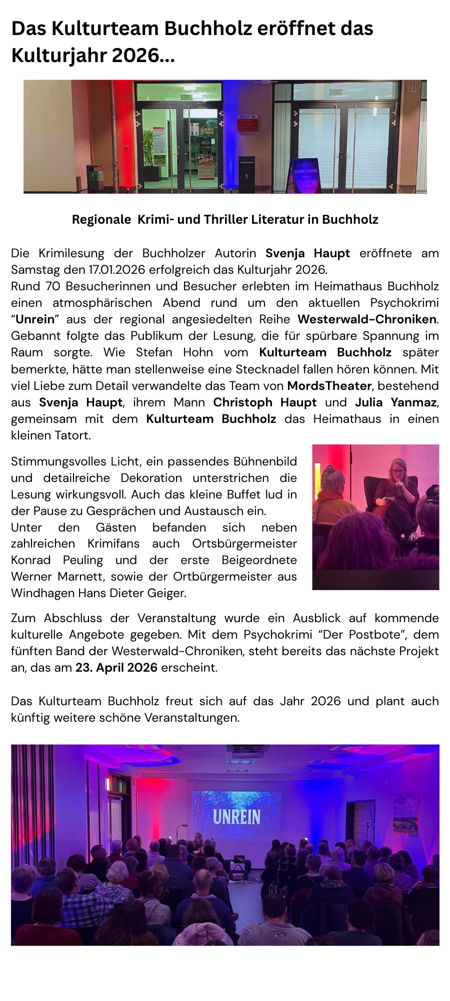 Wir wünschen allen Leserinnen und Lesern ein besinnliches Weihnachtsfest und einen guten Start ins Neue Jahr 2026! Euer Kulturteam Buchholz, Werner Marnett, Stefan Hohn, Uwe Holstein, Steffi Klör, Katja und Jürgen Sellge & Barbara Sterzenbach